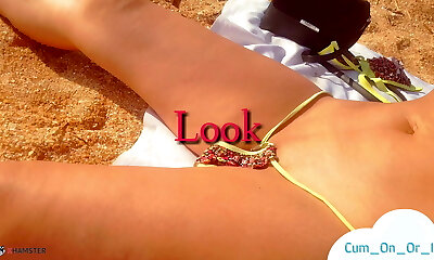 Shy and nervous gf with monstrous tits in a tiny bikini flashes in