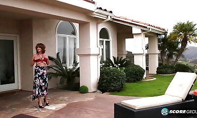 Succulent cock deep-throating babe with natural tits fucks her pervy neighbor