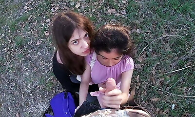 Two nasty beauties with great shapes give dual bj to a hot dude