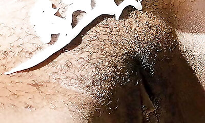 Ebony MILF BImbo masturbates her unshaved black pussy solo