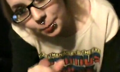 Super-fucking-hot emo girl with fine tits strokes my dick with a pocket pussy