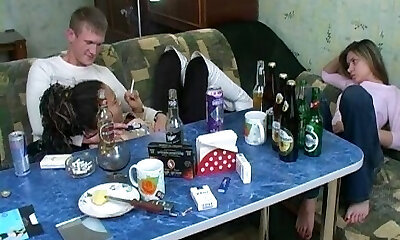 Obscene Russian teens fuck furiously in hardcore foursome fuck session