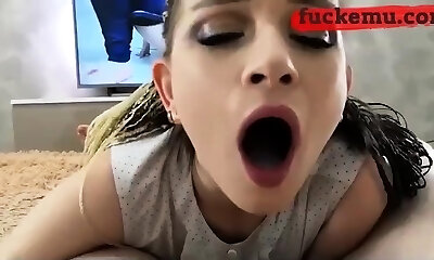 Adorable smiling teen Fira Ventura gives her head and rides a dick reverse on Pov camera