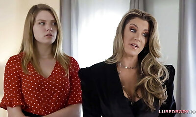 Milf Ebony fucks her blonde daughter-in-law's boyfriend and concludes up having a creampie threesome! Carla Morelli and Naty Delgado