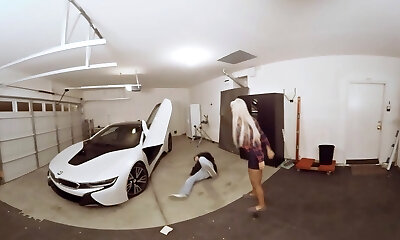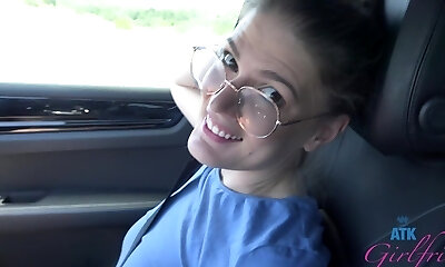 Blonde babe Chrystal Sinn passes her driving check-up with her honeypot.