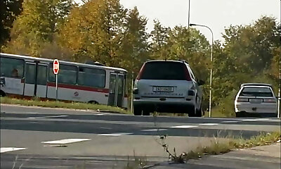 German nubile Hitchhiker picked up and romped in car with grandpa