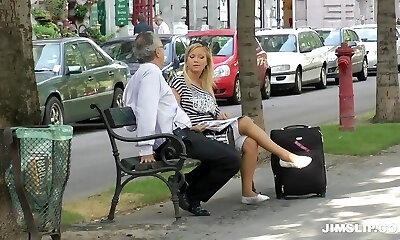 Curvy blond flight attendant gets pounded rock hard by an older dude