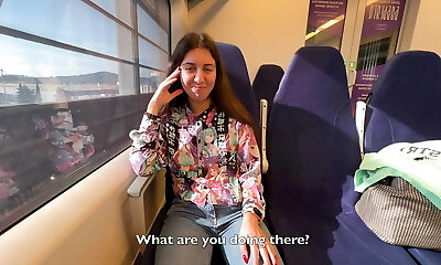 Natural amateur ash-blonde chick is ready for some fondling in the bus