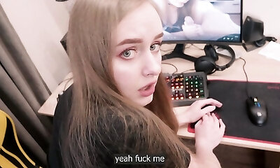 Naughty step-sister fumbles her pussy on stepbrothers hard chisel, do blowjob and then fucks him deep till huge creampie!